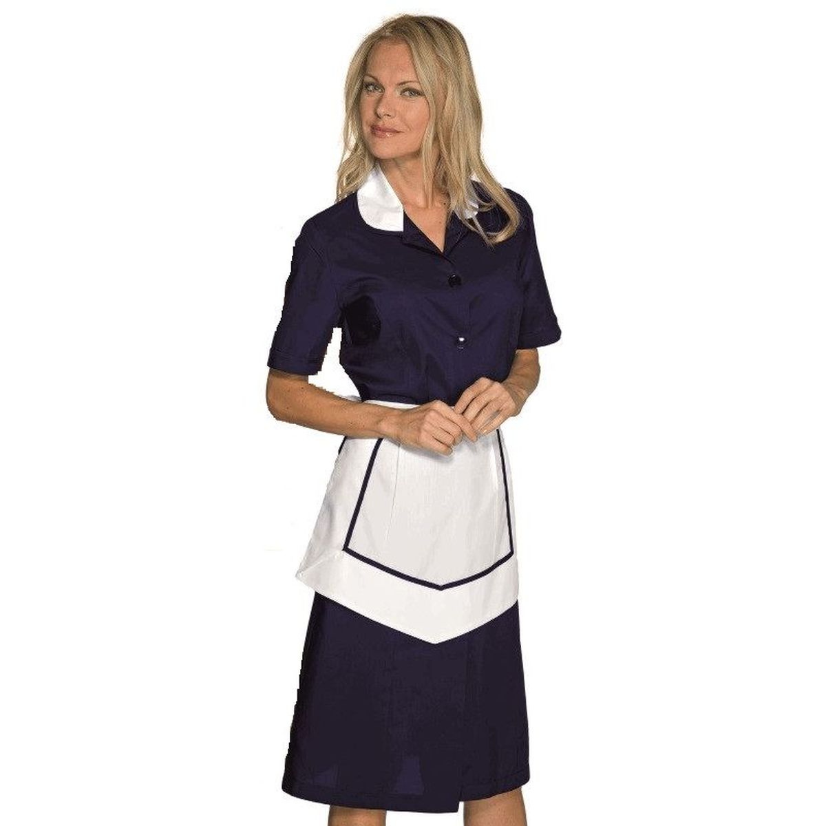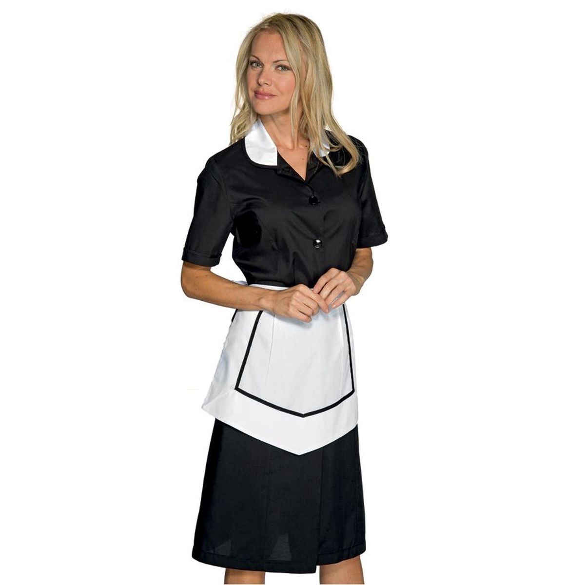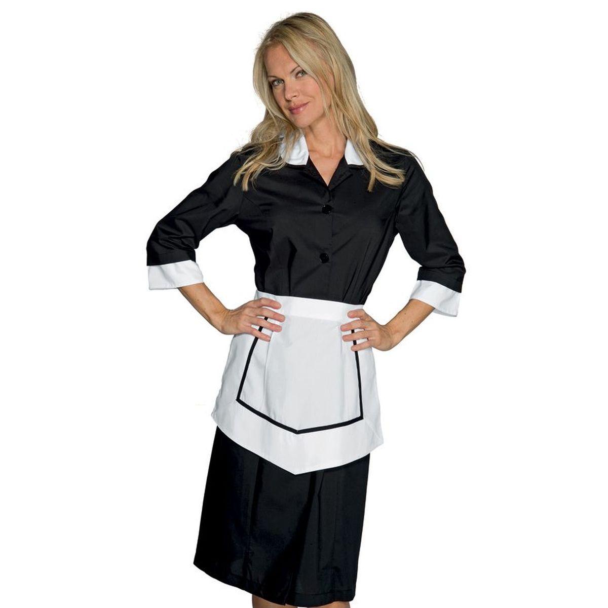 Camice donna, manica 3/4 o corta, completo di grembiulino coordinatotessuto misto cotone, 65% poliestere 35% cotone, peso 125 gr/m²