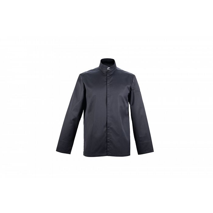 - Giacca cuoco uomo con collo a camicia, chiusura centrale con cerniera lampo. Sovracuciture sul davanti, il taschino sul petto e gli spacchi laterali. Contrasto con tessuto di colore antracite all'interno del collo, della chiusura centrale e dei polsini. -