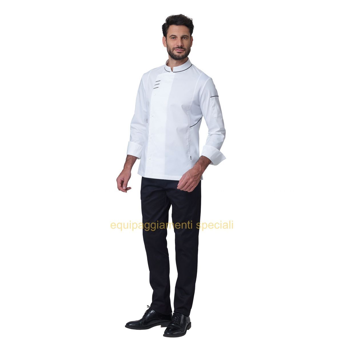 Giacca cuoco Xander manica lunga, colletto coreana, abbottonatura con bottoni a pressione, maniche avvolgibili,