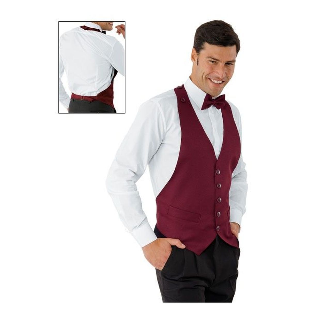 Finto gilet, modello unisex, allacciato sul retro tramite fibbia e sul collo