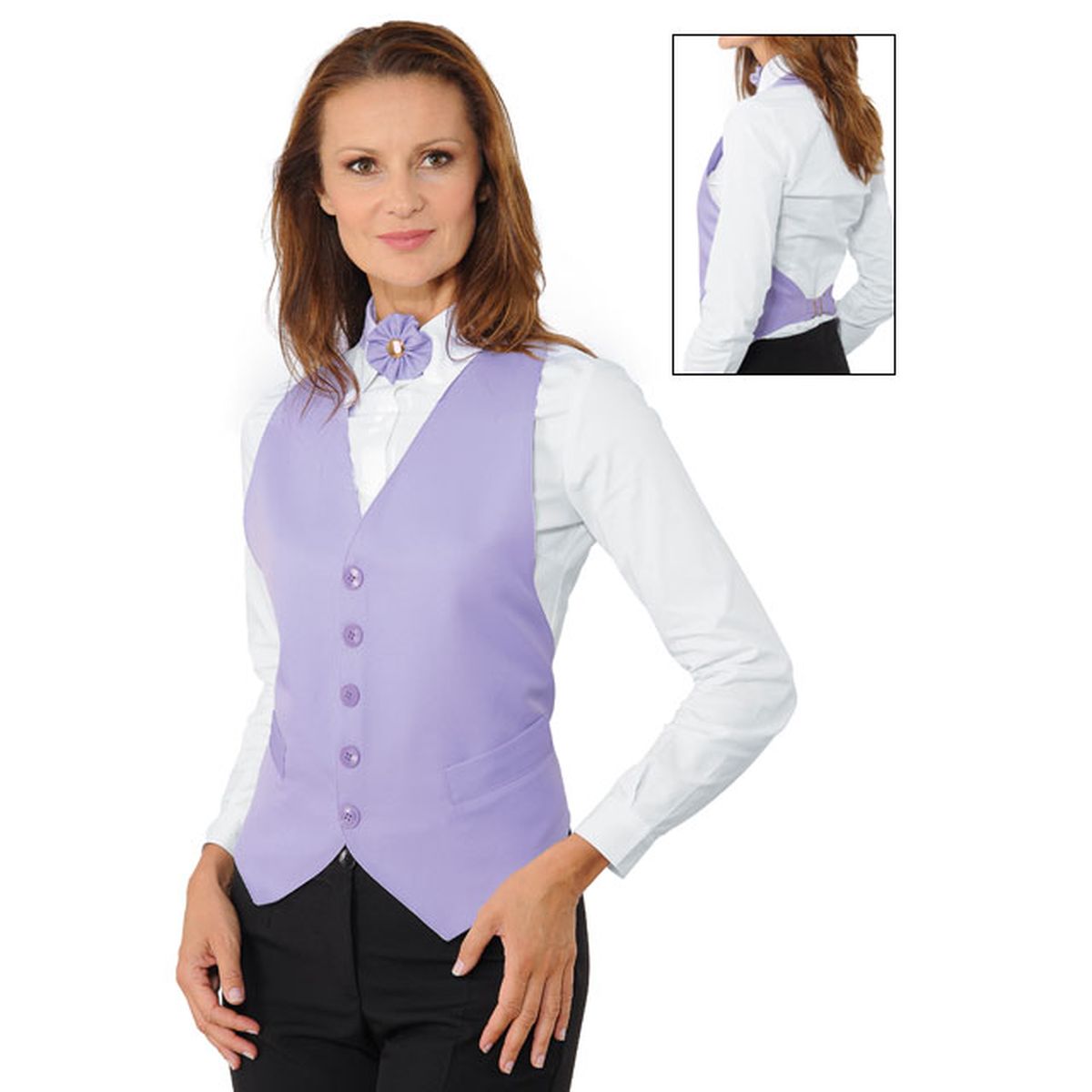 Finto gilet, modello unisex, allacciato sul retro tramite fibbia e sul collo