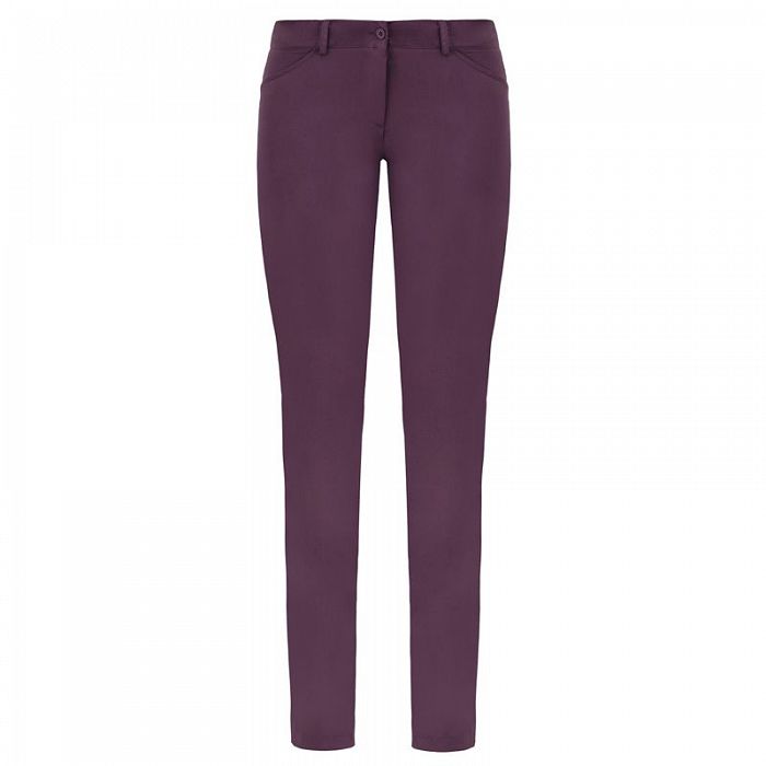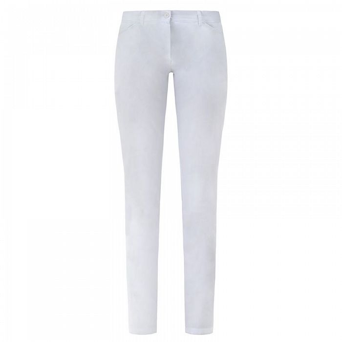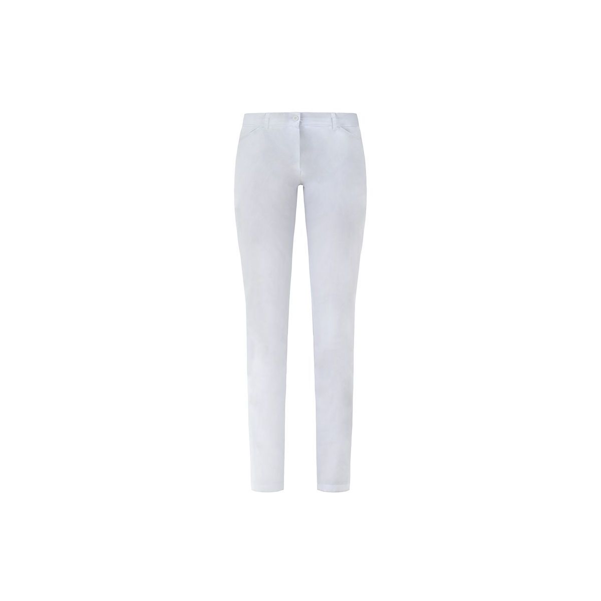 Pantalone donna Giblor's Giulia, due tasche, elastico nel fascione, passanti per cintura, fondo stretto, chiusura con zip e bottone - Tessuto: 50% lyocell 50%poliestere 200 gr/m² (TENCEL®) - Colore: bianco, blu, pistacchio, prugna - Taglie: XS - XXL