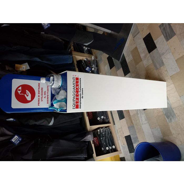 Totem in cartone predisposto per gel lavamani e guanti, prodotti NON inclusi